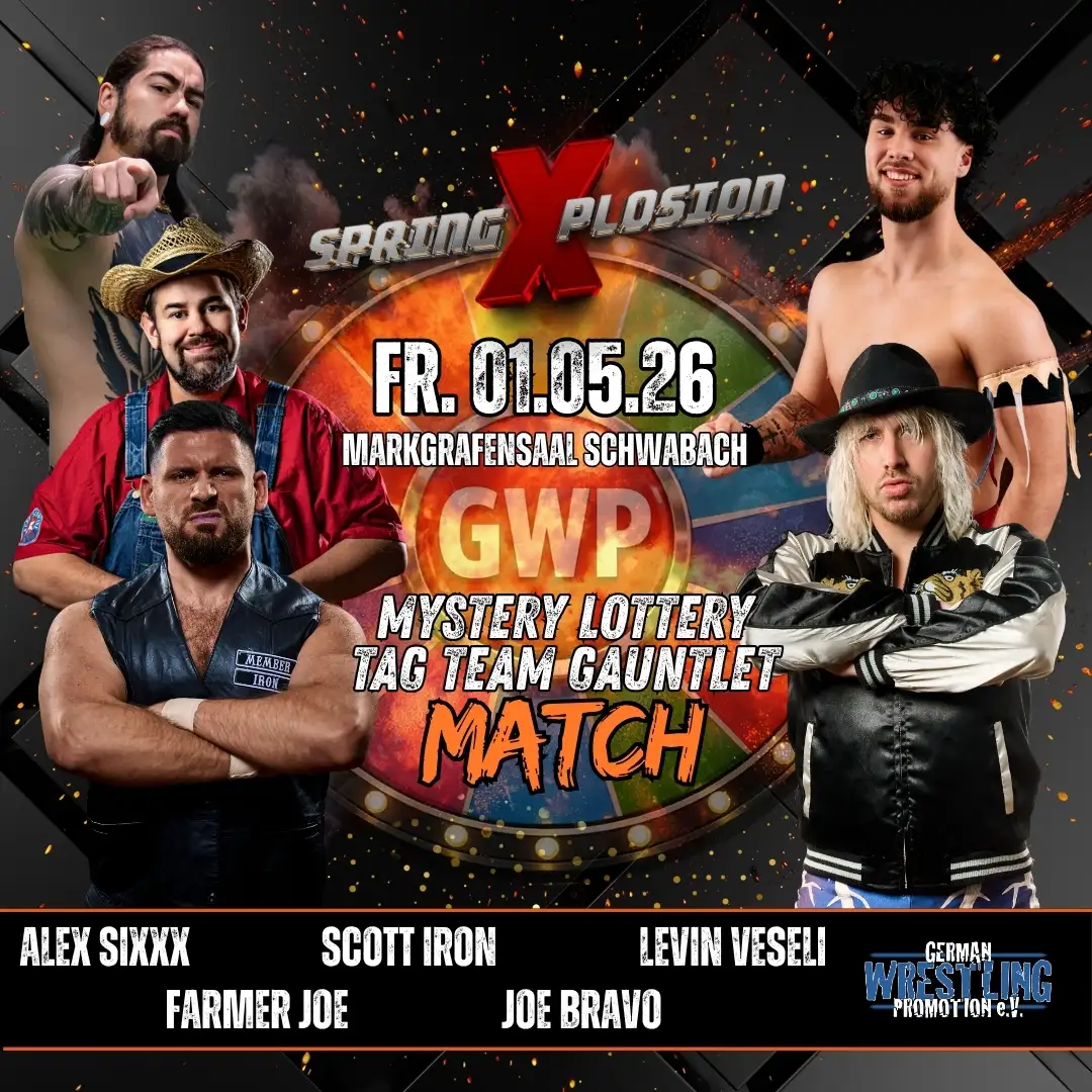 Am 01. Mai präsentiert die German Wrestling Promotion bei Spring Xplosion eine Premiere: das erste Mystery Lottery Tag Team Gauntlet