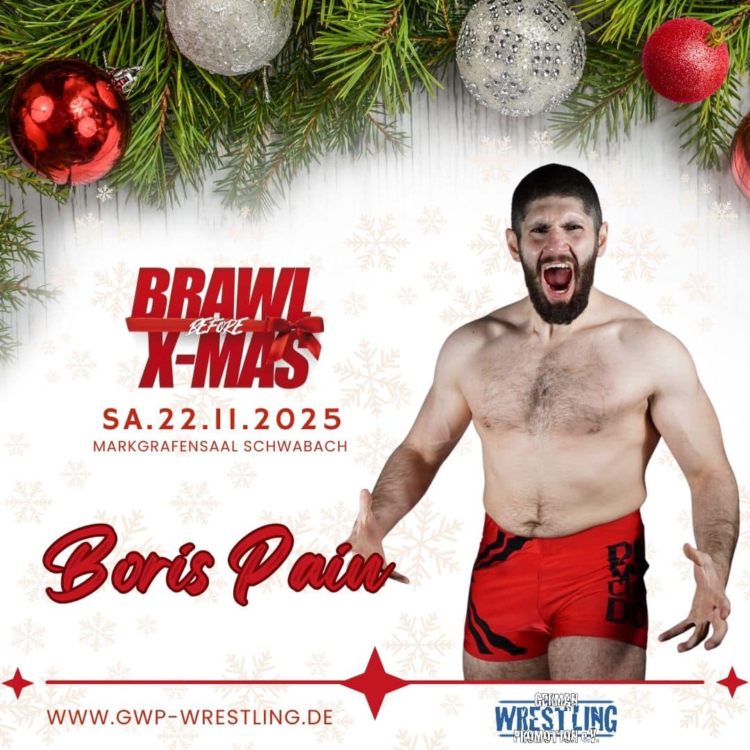Am 22. November ist es endlich soweit: Boris Pain kehrt zurück in den Ring der German Wrestling Promotion – und das bei Brawl Before Xmas im Markgrafensaal Schwabach. Für Fans bedeutet das nicht nur ein Wiedersehen mit einem der charismatischsten Athleten der GWP, sondern auch die Rückkehr eines Mannes, dessen Powermoves im Ring gefürchtet sind. Wenn Boris Pain zuschlägt, bleibt kein Stein auf dem anderen – seine kompromisslose Härte und sein unbändiger Wille machen ihn zu einem eindrucksvollen Performer der deutschen Wrestling-Szene. Wer sich ihm in den Weg stellt, ist bislang noch nicht bekannt – doch eines ist sicher: Der Gegner sollte sich auf einen erbitterten Kampf einstellen.