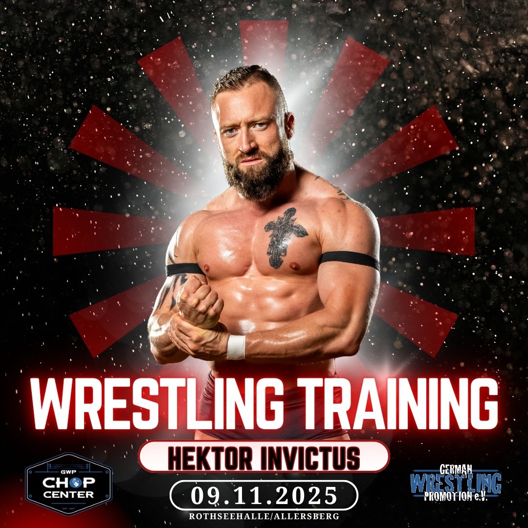Er ist einer der besten Allrounder Europas. Der ehemalige GWP World Champion und amtierende WrestlingCorner.de Champion, Hektor Invictus, leitet am 09.11.2025 das Training im GWP Chop Center.