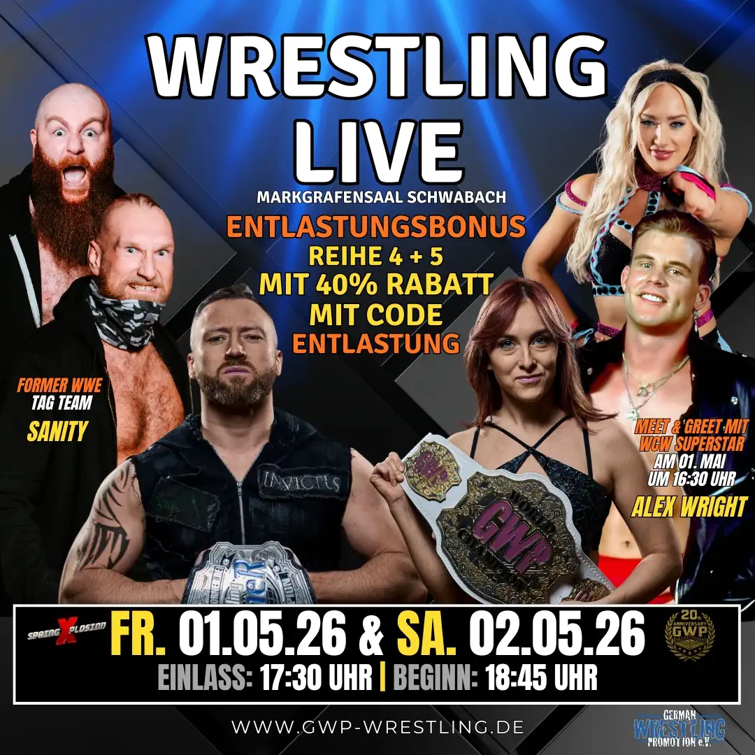 Egal ob für GWP Spring Xplosion am 01.05. (Feiertag!) oder unsere große Jubiläumsshow GWP 20th Anniversary am 02.05.:
